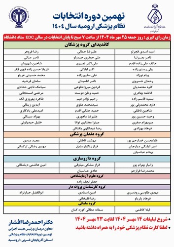 لیست نامزدهای انتخاباتی نظام پزشکی ارومیه 1404 منتشر شد.